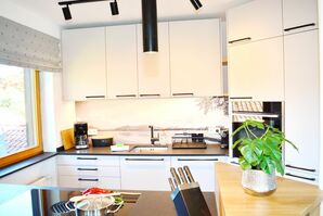 Die Wohnung empfängt Sie mit einer behaglichen Atmosphäre, geprägt von vielen liebevoll gestalteten Holzelementen und einem eleganten, zeitgemäßen Design. Im offenen Wohnbereich mit moderner Küche und gemütlichem Erker-Essplatz genießen Sie entspannte Stunden – der dezente Seeblick sorgt dabei für eine besondere Stimmung.